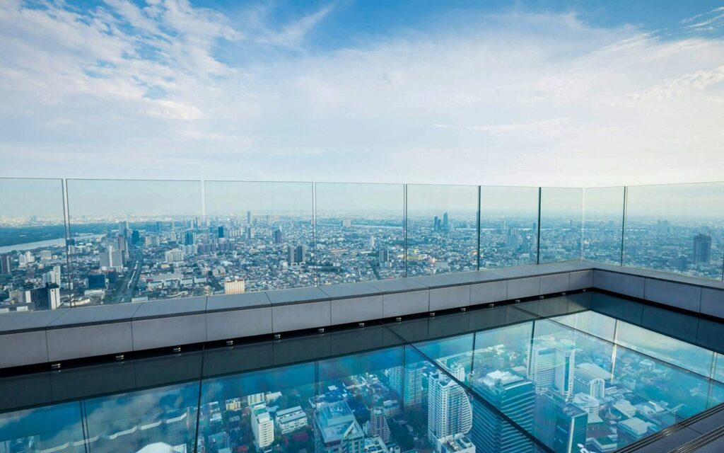 El King Power Mahanakhon no es solo el rascacielos más alto de Bangkok, sino que también alberga una de las experiencias más impactantes: el SkyWalk. Ubicado a 314 metros de altura, este mirador ofrece vistas de 360° que permiten ver la ciudad desde una perspectiva completamente nueva.