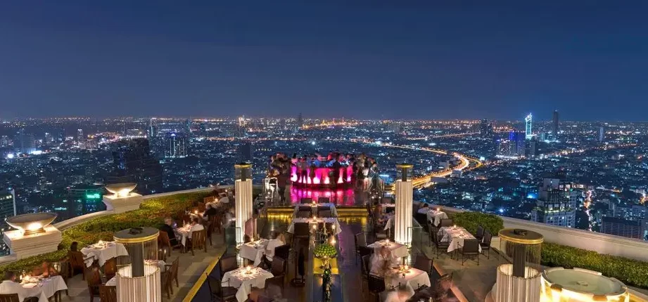 Para quienes buscan una experiencia más sofisticada, el Vertigo & Moon Bar es el rooftop ideal. Ubicado en el piso 61 del lujoso hotel Banyan Tree, este bar ofrece un ambiente exclusivo con cócteles premium y una vista inigualable de la ciudad.