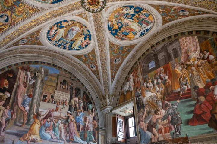 2. Las Estancias de Rafael: Un conjunto de salas decoradas por el mismo Rafael. La más conocida es la Escuela de Atenas, donde verás representaciones de los grandes filósofos de la antigüedad con el icónico toque del maestro renacentista.