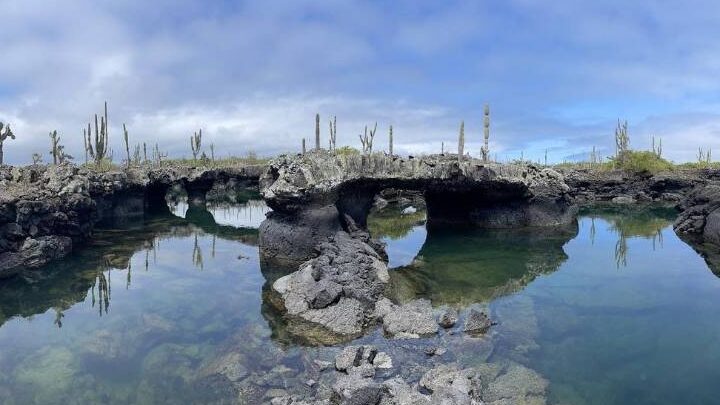 - Excursión a los Túneles de Lava: Navega por un laberinto de formaciones de lava que han creado un paisaje único. Este es uno de los mejores lugares para practicar snorkel en Galápagos, donde puedes nadar junto a tortugas marinas, tiburones de punta blanca y caballitos de mar.